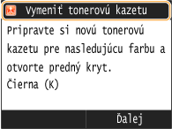 Tonerové kazety nevymieňajte, kým sa na displeji nezobrazí hlásenie, aby ste tak urobili.