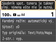 <Zásobník spot. tonera je takmer plný. Výmena ešte nie je nutná.>