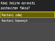 Če tapnete <Nastavi kasneje>, se način sprejema nastavi na <Samodejno>. Če želite pozneje konfigurirati nastavitve faksa, tapnite <Meni>