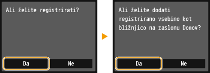 Najprej morate registrirati pogosto uporabljane nastavitve za kopiranje, faks in optično branje. ![]() |