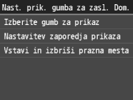 Če je zaslon Domov poln in ni mogoče registrirati nobenih nastavitev več, z možnostjo <Nast. dom. zaslona> na zaslonu Domov izbrišite presledke ali pa odstranite registrirane gumbe. Brisanje gumbov