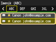 Registriranje polja <Ime> ni obvezno. Če registrirate <Ime>, lahko prejemnike iščete po abecednem vrstnem redu.