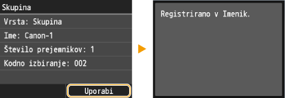Ponovite 9. in 10. korak, dokler ne registrirate vseh želenih prejemnikov, nato pa tapnite <Uporabi>.
