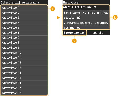 Če iz imenika izbrišete prejemnika, registriranega v nastavitvi, ga izbrišete tudi iz registrirane nastavitve.