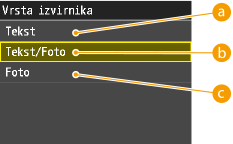 Kakovost skenirane slike lahko izberete glede na vrsto dokumenta, na primer za besedilne dokumente, dokumente z grafi in diagrami ali fotografije iz revij.