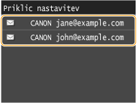 Prejemnika lahko izberete med zadnjimi tremi prejemniki. Ko izberete uporabljenega prejemnika, naprava nastavi iste nastavitve skeniranja, kot ste jih uporabili pri zadnjem pošiljanju dokumentov temu prejemniku.
