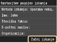 Kot pogoj iskanja lahko uporabite osebno ime, številko faksa, e-poštni naslov, ime organizacije in ime oddelka. Hkrati lahko uporabite več iskalnih pogojev.