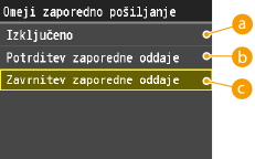 Zaporedno oddajanje je funkcija, ki zaporedoma pošlje fakse več prejemnikom. To funkcijo lahko po želji onemogočite.