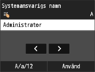 Ange upp till 32 tecken för systemansvarigs namn och tryck på <Använd>. Skriva text