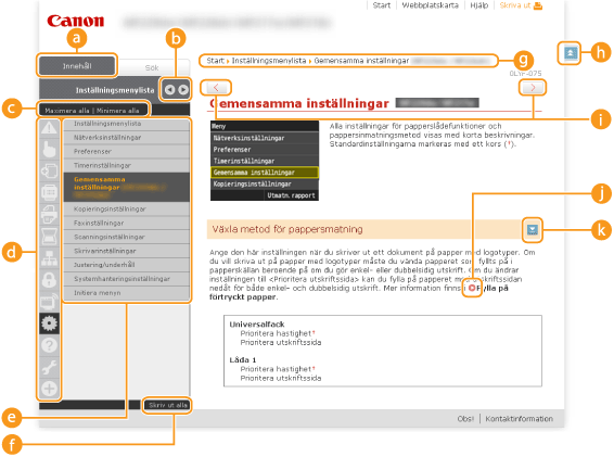 Visar vald sidas ämnen. Om du klickar på "+" som visas vid ämnet visas alla underavsnitt. Klicka på "-" för att stänga det visade ämnet.
