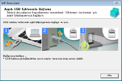 Aşağıdaki ekran görüntülendiğinde, aygıtı ve bilgisayarı bir USB kablosuyla birbirine bağlayın → aygıtın gücünü açın.