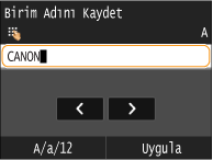 Ünite adını girin (kullanıcı adı veya şirket adı vb.) (Metin Girme) ve <Uygula> öğesine dokunun.