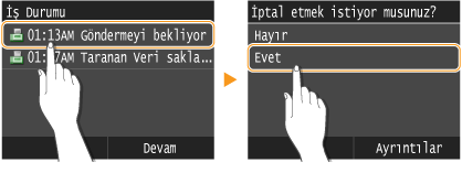 tuşuna bastıktan hemen sonra faks gönderme işlemini iptal etmek isterseniz, ekranda <İptal> öğesine dokunun veya