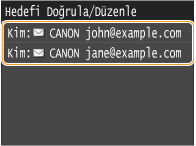 Hedef listesini görüntülemeden hızlı ve kolay şekilde hedefleri silmek istiyorsanız1. adımda <Doğrla/Düzenle> öğesine dokunmadan önce belirttiğiniz hedefler arasında geçiş yapmak için