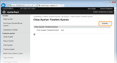 [Cihaz Ayarları Yönetimi Ayarları] öğesini tıklatın.
