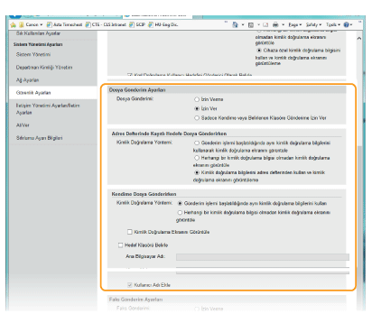 [Gönderim Fonksiyonu İçin Kimlik Doğrulama Ayarları] öğesini tıklatın.