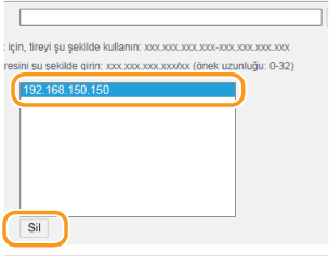 Bir IP adresini seçin ve [Sil] öğesini tıklatın. ![]() |