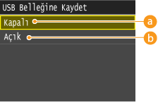 Verilerin USB bellek aygıtına saklanmasını yasaklar. Taranan veriler USB bellek aygıtına saklanamaz.