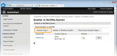 Bir anahtar çifti, [Anahtar Kullanımı] altında "TLS" veya "IEEE 802.1X" görüntülendiğinde olduğu gibi, geçerli olarak herhangi bir amaçla kullanılıyorsa silinemez. Bu durumda, anahtar çiftini silmeden önce işlevi devre dışı bırakın veya anahtar çiftini değiştirin.