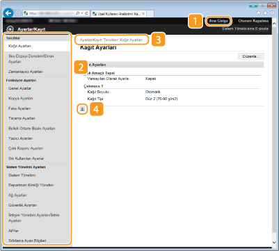 Yalnızca Sistem Yöneticisi Modunda oturum açtığınızda [Sistem Yönetimi Ayarları] alanını belirleyebilirsiniz.