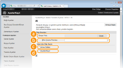 Alınacak dosyayı belirtmek için [Gözat] öğesini tıklatın ve dosyayı seçin veya [Dosya Yolu] içinde dosya yolunu (dosyanın kaydedildiği konum ile birlikte dosya adı) girin.