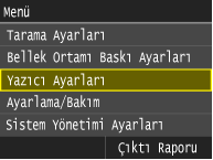 <Varsayılan Kağıt Boyutu> ve <Varsayılan Kağıt Tipi> ayrı ayrı belirtilemez. <Varsayılan Kağıt Boyutu> ekranında kağıt boyutunu belirtin ve ardından <Varsayılan Kağıt Tipi> ekranında kağıt türünü belirtin.