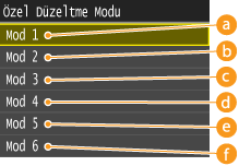 <Hata Ayıklama> için <Yarım tonlar> etkinleştirildiğinde (Yarım tonlar), <Mod 1>, <Mod 2>, <Mod 3> ve <Mod 4> çıktılar üzerine <Mod 6> ile aynı etkiyi uygular.