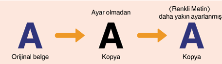 <Orijinal Tür> öğesi <Metin/Fotoğraf/Harita> veya <Metin> olarak ayarlandığında ayarlar renkli kopyalara da uygulanır ( Belge Türünü Seçme).