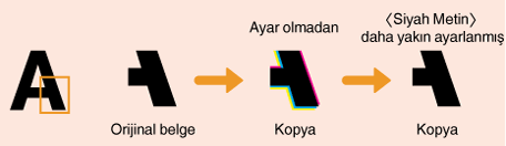 Siyah veya siyaha yakın metinlerin kopyalama sonuçları tatmin edici değilse bu ayarlama ile renk üretilebilirliğini iyileştirebilirsiniz. Bu ayarlama değeri besleyicide ve plaka camında bağımsız olarak da yapılabilir.