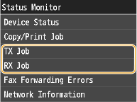 ![]() <TX Job Status>/<RX Job Status>Відображає список документів, які надсилаються, отримуються чи очікують на обробку.