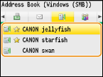 Доступні адресати для спільних папок і файлових серверів – це адресати, зареєстровані в адресній книзі. Якщо в адресній книзі не зареєстровано жодного адресата, перш ніж сканувати документ і зберігати його у спільній папці чи на файловому сервері, спочатку зареєструйте адресати в адресній книзі.