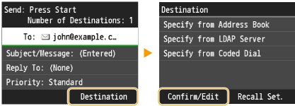 Перш ніж на кроці 1 торкатись елемента <Confirm/Edit>, за допомогою кнопок  /  можна переглянути зазначені адресати. Знайдіть адресата, якого потрібно видалити, а потім натисніть клавішу  .