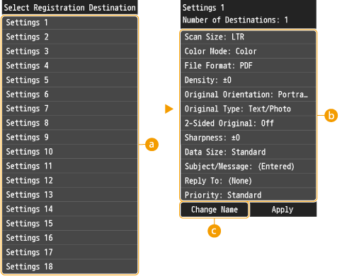 <Favorite Settings> <Edit/Delete> <Delete> виберіть параметри для редагування <Yes>.Щоб використовувати зареєстрований параметр, послідовно торкніться таких елементів: <Scan>
