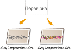 У поєднанні з деякими параметрами дані чорного та сірого кольорів, що мають еквівалентне співвідношення червоного, зеленого та блакитного кольорів, може бути надруковано за допомогою виключно чорного (K) тонера, навіть якщо вибрано значення <Off>. Нижче наведено приклади.
