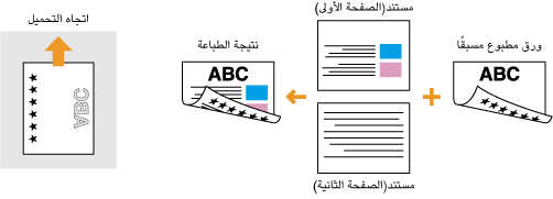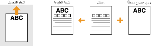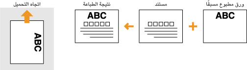 يصف هذا القسم بشكل أساسي كيفية تحميل الورق المطبوع مسبقًا مع توضيح التوجيه والاتجاه الصحيحين. للحصول على وصف للإجراء العام لتحميل الورق في درج الورق أو الدرج متعدد الأغراض، انظر تحميل الورق في درج الورق أو تحميل الورق في الدرج متعدد الأغراض.
