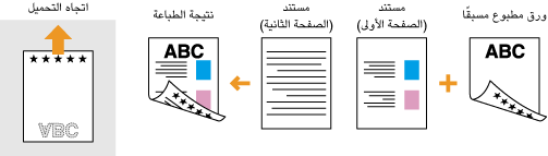 الطباعة من الدرج متعدد الأغراضقم بتحميل الورق موضوعًا في نفس الاتجاه كما هو الحال مع درج الورق مع عكس المقدمة والمؤخرة.