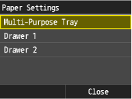 بعد تسجيل إعداد الورق الافتراضي، لا يتم عرض شاشة إعداد الورق عندما يتم تحميل الورق، ويتم استخدام الإعداد ذاته بشكل دائم. إذا قمت بتحميل حجم أو نوع ورق مختلف بدون تغيير إعدادات الورق، فقد لا يتمكن الجهاز من الطباعة بشكل صحيح. لتفادي هذه المشكلة، قم بتعطيل الإعداد الافتراضي من خلال تحديد <Off> في الخطوة 3، ثم قم بتحميل الورق.