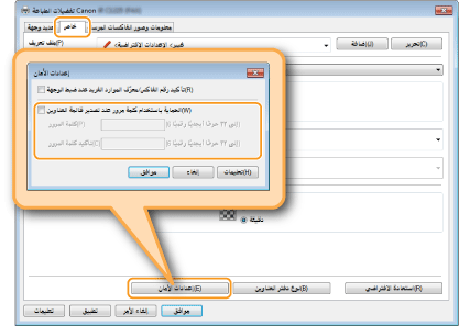 إذا قمت بتحديد [الحماية باستخدام كلمة مرور عند تصدير قائمة العناوين] في مربع الحوار الذي يتم عرضه عندما يتم النقر فوق [إعدادات الأمان] لعلامة التبويب [خاص]، يتم عرض مربع حوار لإدخال كلمة مرور عندما يتم النقر فوق [تصدير]. لمزيد من المعلومات، انقر فوق [تعليمات] على شاشة برنامج تشغيل الفاكس.