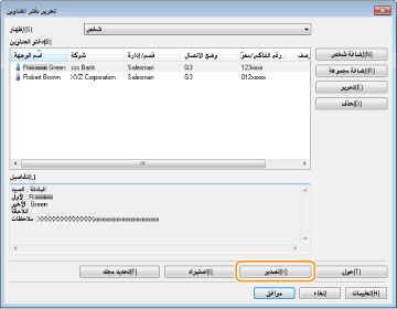 انقر فوق [تصدير] في مربع الحوار [تحرير دفتر العناوين].