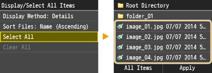 إذا كنت قد اخترت الملف قبل النقر <All Items>, يمكنك فقط تحديد ملفات لها نفس التنسيق.