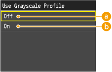 يتيح لك هذا الإعداد تحديد الكيفية التي ينبغي بها طباعة البيانات أحادية اللون (سماوي=أرجواني=أصفر=0) عند معالجة بيانات CMYK تعتمد على الجهاز باستخدام <CMYK Simulation Profile>.