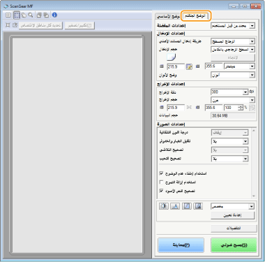 عند النقر فوق علامة التبويب [الوضع المتقدم] على شاشة ScanGear MF، فيمكنك إجراء المزيد من التعديلات المتقدمة في جودة الصورة أكثر من التعديلات التي يمكنك إجراؤها في الوضع "بسيط". كما يمكنك تسجيل الإعدادات المضبوطة كإعدادات مفضلة. لمزيد من المعلومات التفصيلية، انقر فوق الرمز