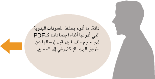 قم بتسجيل عناوين بريد الحاضرين وتنسيق الملف كمجموعة <PDF (Compact)> في <Favorite Settings>. يمكنك استخدام مجموعة الإعدادات هذه بسهولة متى احتجت إليها. تسجيل إعدادات المسح الضوئي المستخدمة بشكل متكرر (البريد الإلكتروني/المجلد المشترك/خادم الملفات)