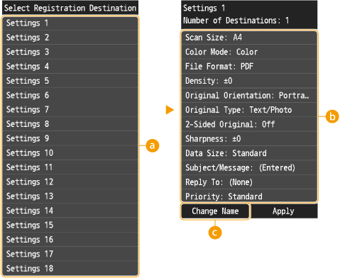 <Favorite Settings> <Edit/Delete> <Delete> انقر فوق الإعدادات للتحرير <Yes>.إذا كنت ترغب في استخدام إعداد مسجل <Scan>