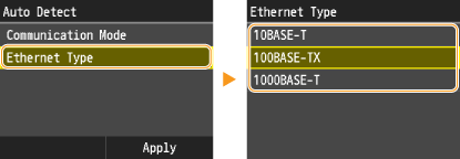 <10BASE-T>، <100BASE-TX>، أو <1000BASE-T>.![]() ![]() لتحديد <1000BASE-T>, يجب تحديد <Full Duplex> في الخطوة 2.