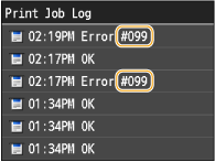 إذا لم تكن الطباعة ناجحة أو يتعذر عليك إرسال الفاكس أو المستند الممسوح ضوئيًا أو استلامهما أو في حالة حدوث خطأ آخر، فسيظهر هذا الخطأ في تقرير أو رسالة على الشاشة <Status Monitor> كعدد مكون من ثلاثة أرقام (رمز الخطأ). تحقق مما يلي لمعرفة الأسباب والحلول لكل رمز من رموز الخطأ. لمعرفة كيفية طباعة تقرير الخطأ والمعلومات الواردة في التقرير، انظر