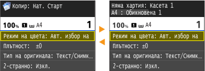 ![]() Когато е изведена настройка <Имате уведомления.> или <Натиснете иконата вдясно ->>