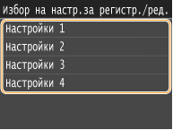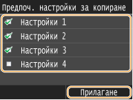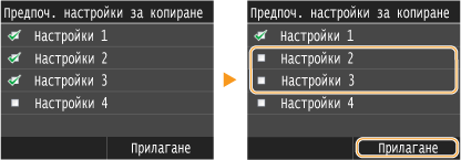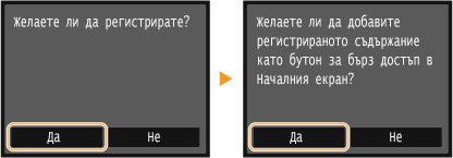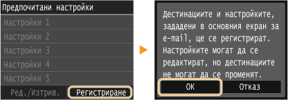 <Да>.Ако на стъпка 2 сте избрали настройки, които вече са били запаметени, се извежда екран за потвърждение за замяна на съществуващите настройки.