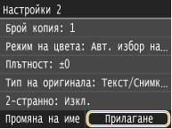 Ако изтриете често използвана настройка, която е запаметена да се извежда в началния екран за <Копиране>, <Факс> или <Сканиране>, бутонът от началния екран, в който е запаметена, също се изтрива.