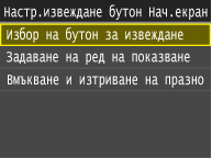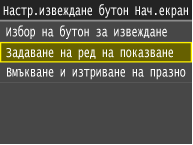 <Предпочитания> <Настройки за извеждане> <Настройки за показване на бутони на началния екран>. |